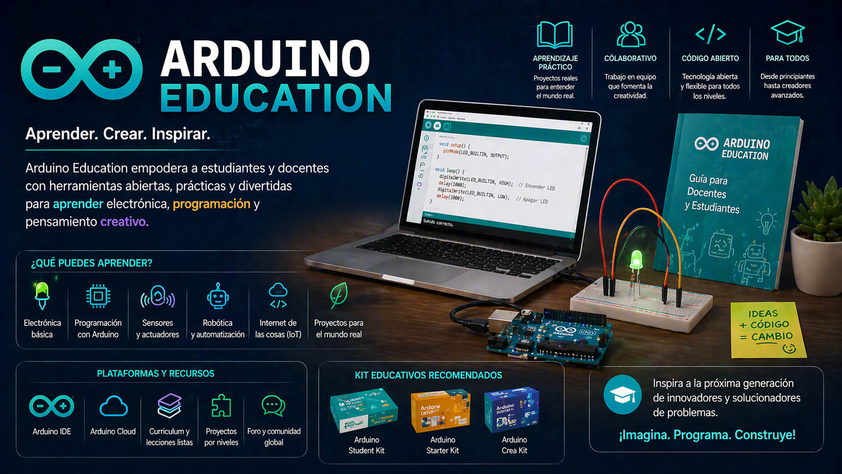Uno de los motivos por los que Arduino destaca en el ámbito educativo no es solo el hardware, sino el abanico de recursos disponibles para docentes y estudiantes: